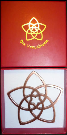 Die VenusblumeDiese Venusblume ist aus reinem Kupfer gefertigt. Kupfer ist das Metall der Venus. Die Form der Venusblume ist exakt im Sinne der Heiligen Geometrie gestaltet. Dadurch strahlt diese Figur all das aus, was mit Harmonie, Schönheit und innerer Ruhe zu tun hat. Weise dieser Venusblume einen schönen Ort zu, an dem sie sich entfalten kann. Auf deinem Schreibtisch schenkt sie dir Ruhe und innere Klarheit, beruhigt dich in Stresssituationen und führt dich in deine innere Mitte. In Wohnräumen strahlt sie Harmonie und Liebe aus. In Schlafräumen bewirkt sie sowohl Sinnlichkeit als auch tiefen, erholsamen Schlaf. Lege sie bewusst auf. Zeichne beim erstmaligen Auflegen ihre Linien nach. Sieh sie dir immer wieder an und lass ihre Wirkung so auf dich übergehen.Preis: Fr. 48.50.- + Versandspesen Die Venusblume kann bestellt werden per E-Mail: pia.blaser@bluewin.ch